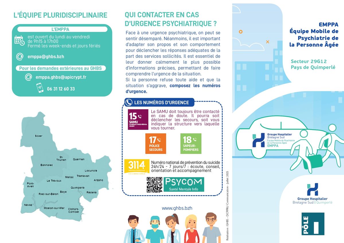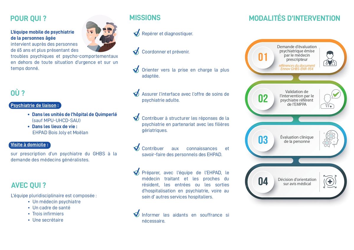 L’EMPPA est une équipe pluridisciplinaire du GHBS qui intervient sur le territoire du Pays de Quimperlé (secteur 29G12) auprès des personnes âgées de 65 ans et plus, présentant des troubles psychiques ou psycho-comportementaux, en dehors de toute situation d’urgence.